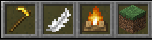サーバーに参加すると下記のようなアイテムが付与されます。左から二番目の羽情報ツールを持って、地面を右クリックすると、緑色のスモークで周りにチャンクの境界が表示されます。